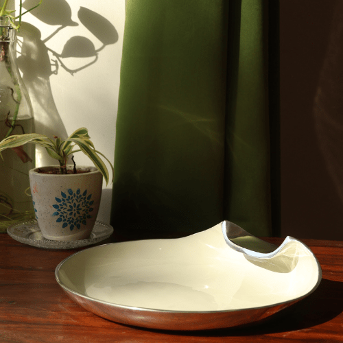 Minimal, and irresistibly giftable — the White Enamel Aluminium Platter is perfect for those who love to host in style. With its clean finish and sleek design, it’s a thoughtful gift that says, “You deserve beauty at your table.” Whether it’s a wedding, housewarming, or festive celebration, this platter adds charm to any occasion and joy to every bite. A simple way to show you care — and support handcrafted, sustainable luxury.
